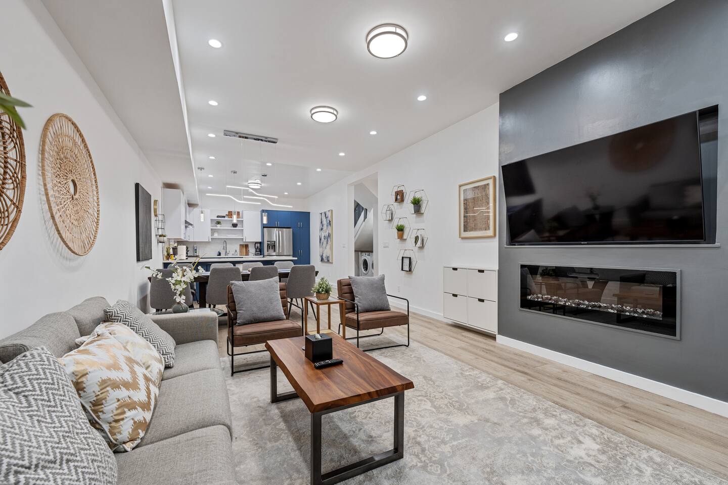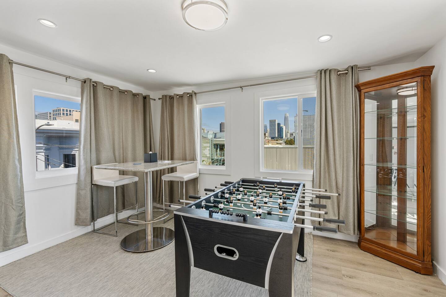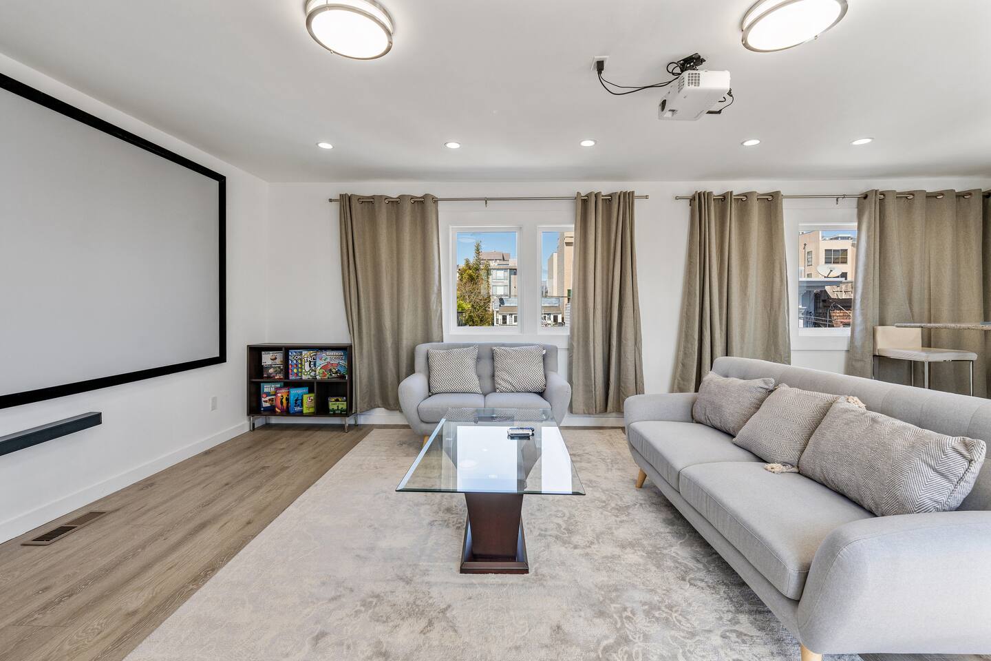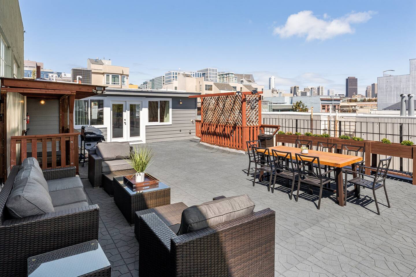Centrally located & newly renovated house! 3 mins from Bill Graham by car 4 mins from City Hall 6 mins from SOMA & Moscone Center 8 mins from Union Square & Chase Center 9 mins from Oracle Park Surrounded by shops, markets, restaurants, and bars within walking distance. 1 car garage & garage opener included Ideal for Large Groups! This SPACIOUS home offers: A rooftop lounging area with an outdoor BBQ grill and dining space An intimate backyard A movie room A living area filled with games