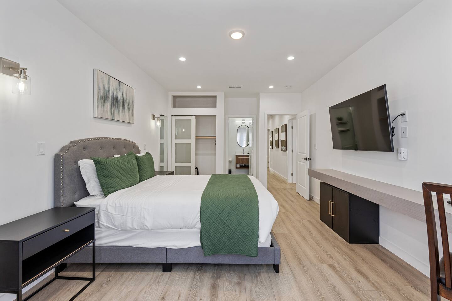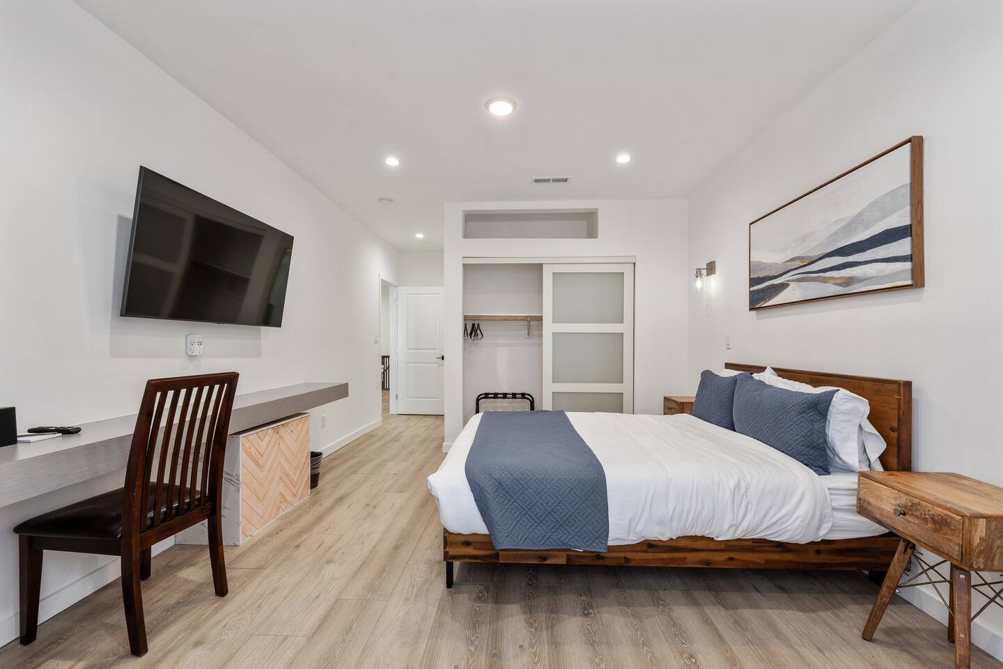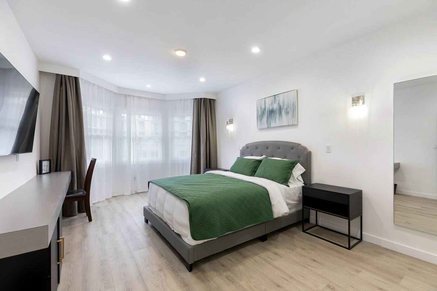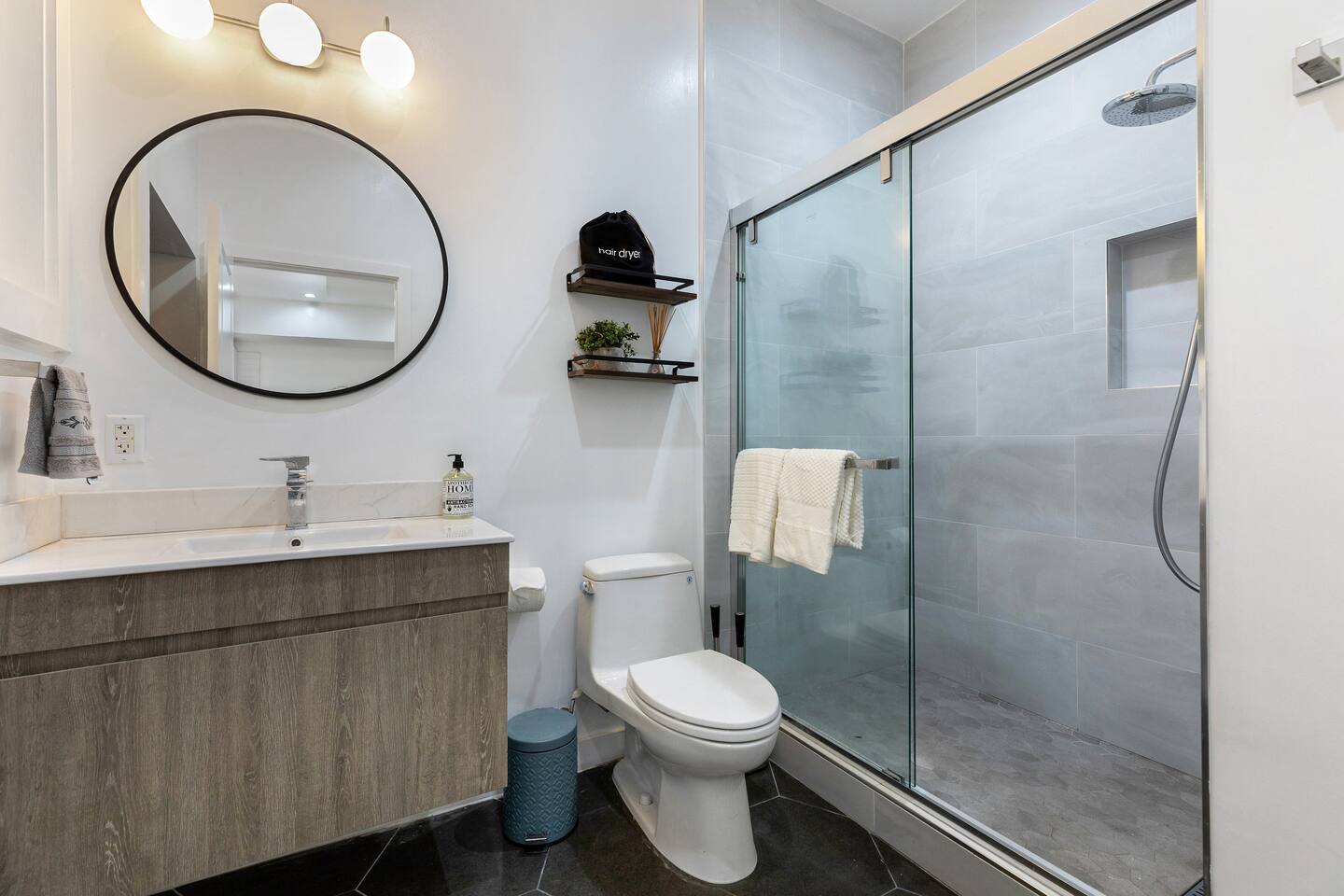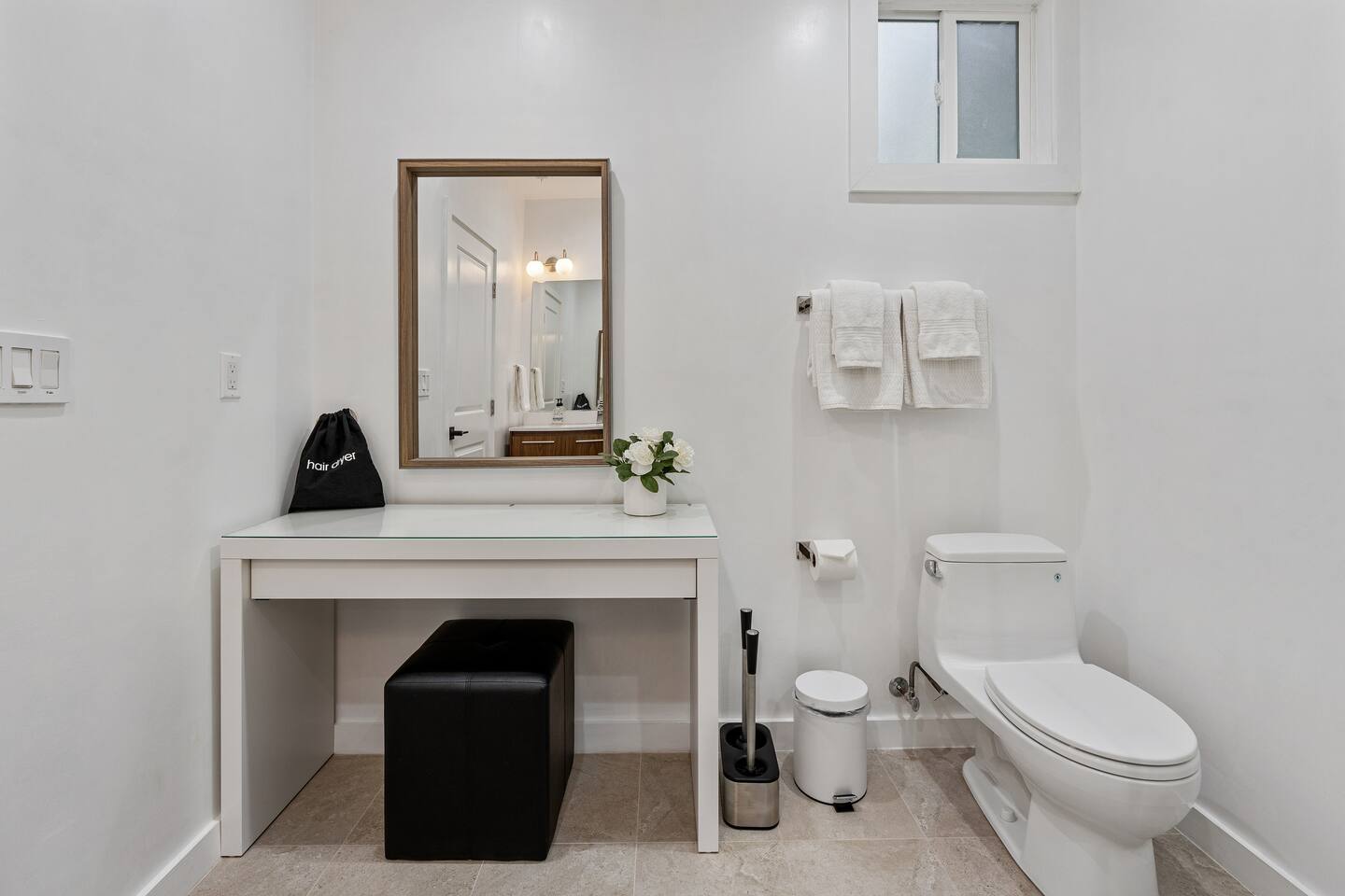 Welcome to our newly renovated oasis! Experience the epitome of modern comfort in this beautifully remodeled home. All four bedrooms are ENSUITES! You can enjoy having your own private bathroom. All bathrooms are full baths. Guests who likes some extra space to relax can enjoy our room with a KING size bed. Complimentary Paramount Plus, Disney Plus, Hulu and ESPN TV streaming service for you to enjoy. Used limited by availability. Up to 3 devices can be used at the same time except for Hulu. One of the bedrooms is conveniently located on the first floor, offering easy access without stairs. Perfect for guests who prefer ground-level accommodation! Indulge in the luxuries of our rain showers and revel in the spacious, open-concept design that seamlessly connects the living room, dining room, and a chef's dream kitchen with state-of-the-art appliances. When you step outside through the patio doors, you'll be greeted by a backyard adorned with enchanting string lights and lush greenery, creating a perfect haven for relaxation. Forget about the hassle of laundry as we offer convenient on-site washer and dryer facilities, along with the added bonus of a private one-car garage for your convenience. If you're here for work or business, we've got you covered with high speed internet and a dedicated workspace, ensuring productivity in a peaceful environment. Each bedroom includes its own smart HDTV. As the day turns into night, head up to our rooftop paradise, complete with a BBQ grill ready for unforgettable gatherings. Enjoy your meals under the stars with ample seating for friends and family, all while taking in the breathtaking city view. But the fun doesn't end there! Adjacent to the BBQ area, we've crafted a movie and game room to elevate your stay. Immerse yourself in cinematic experiences on our impressive 135-inch projector screen while relishing the nostalgia of fresh popcorn from our vintage machine. Challenge your friends and family to thrilling games of foosball, or engage in lively board games that will keep you laughing for hours! Guest access Guests have access to the whole house, including on-site laundry, attached garage, backyard, and roof. *The host is occupying one of the rooms on the second floor and you may or may not see the host on a daily basis.